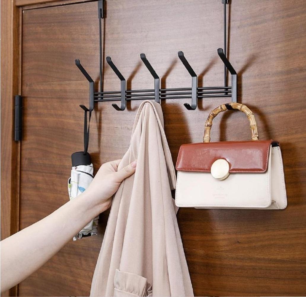 Organize your space with this black iron door hanger. Punch-free, durable, and versatile—ideal for coats, hats, towels, bags & more.